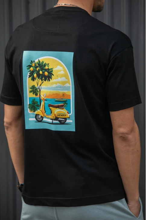 T-shirt σε oversized γραμμή. Στρογγυλή λαιμόκοψη και κοντά μανίκια. Τυπώματα στην πλάτη .