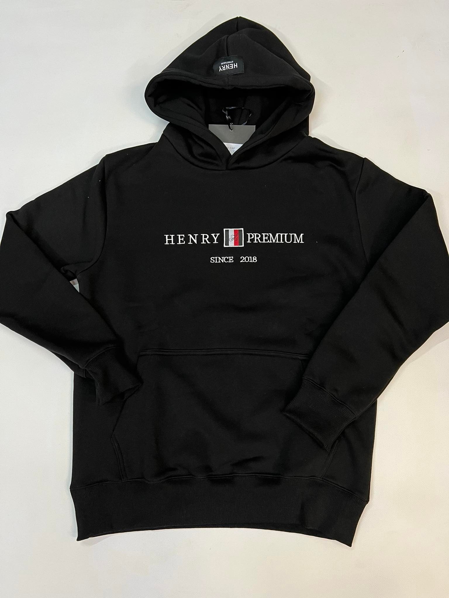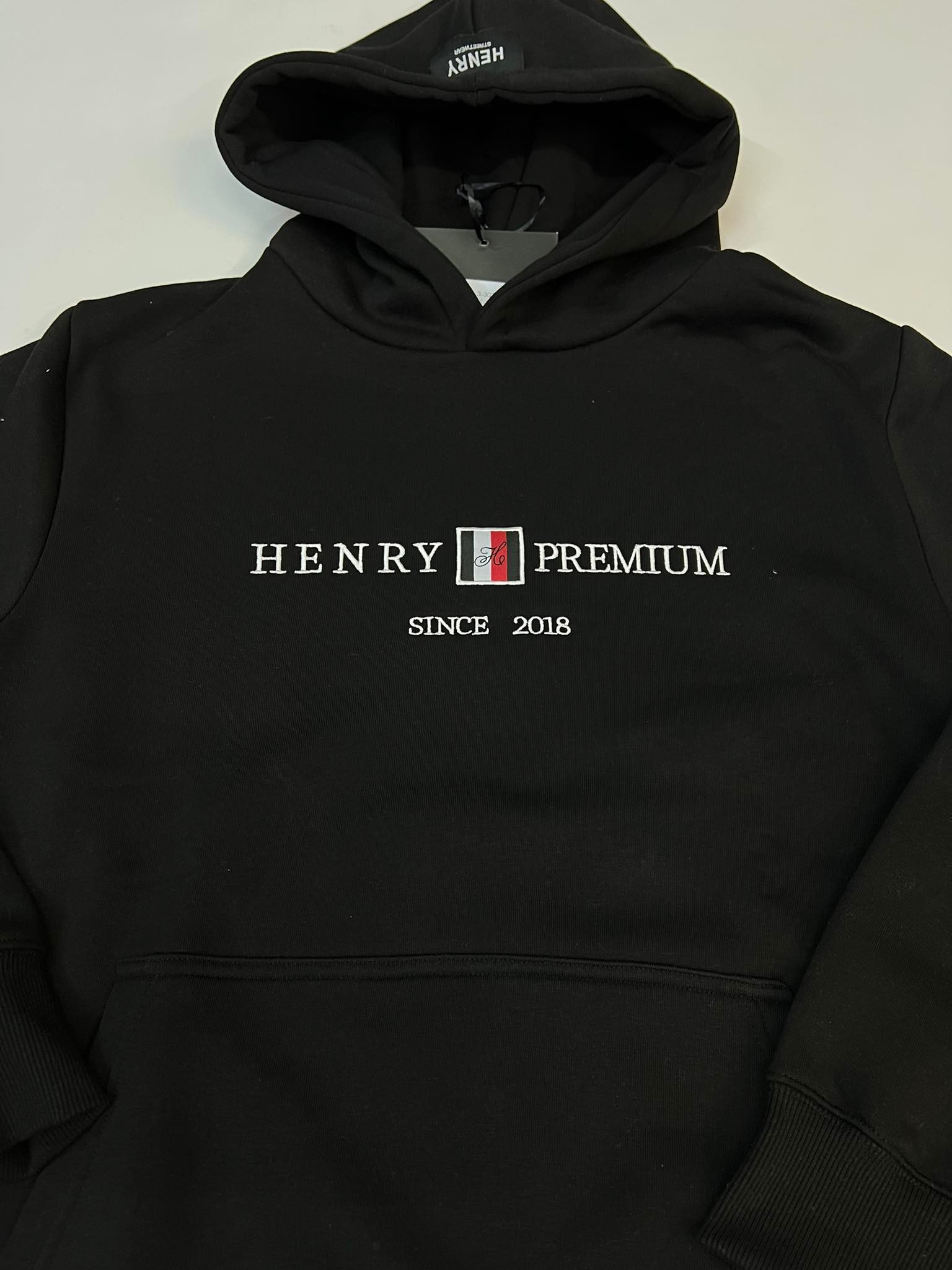 Henry clothing sweatshirt with white embroidery.