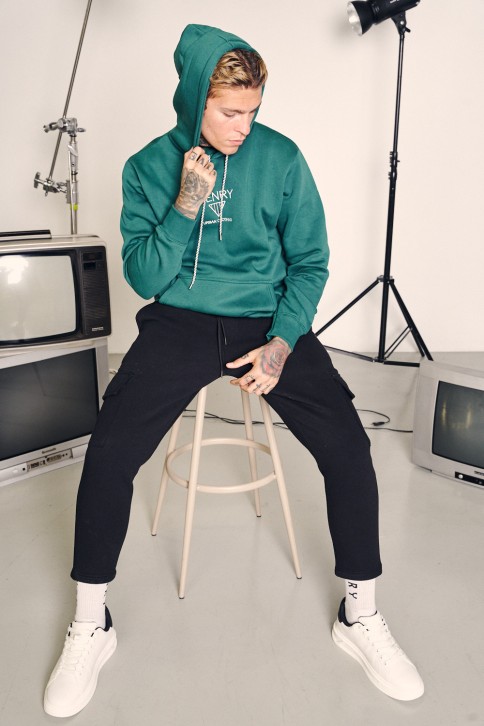 Βαμβακερό φούτερ hoodie με κεντημένο το λογότυπο της εταιρίας κ δίχρωμο κορδόνι. Γιακάς με ρυθμιζόμενη κουκούλα, εσωτερικό χνούδιασμα και μπροστινή τσέπη καγκουρό. Τελειώματα σε ύφανση ριπ.